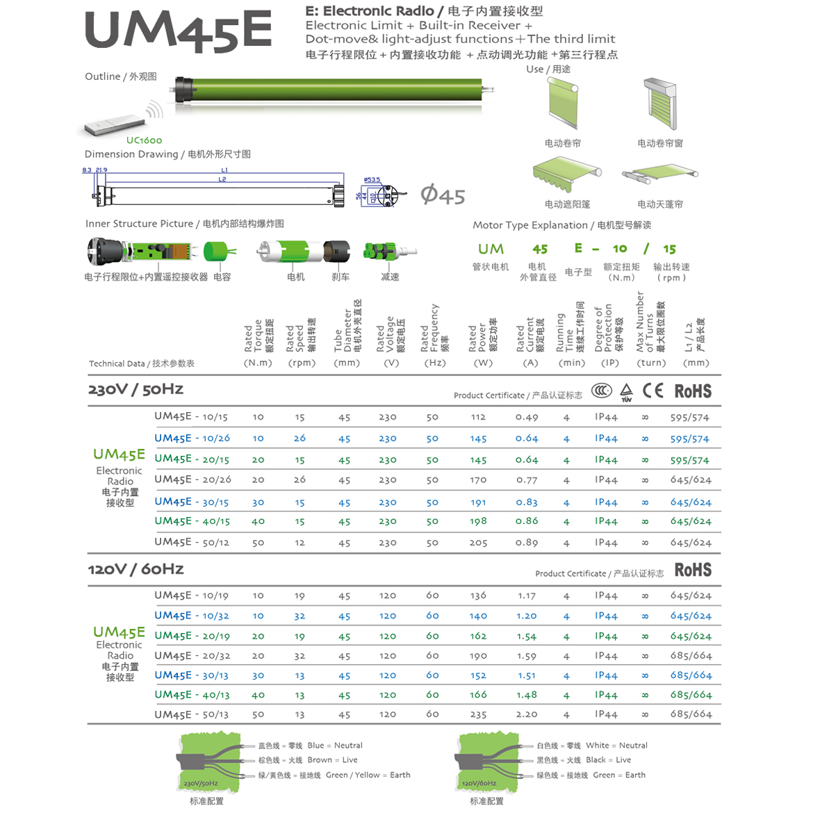 E:Electronic Radio/电子内置接收型Electronic Limit+Integrated radio control+jogging & tilt+The third limit/电子行程限位+内置接收器+点动调光功能+第三行程点
